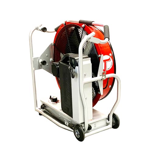 The VS-1.2 delivers effective positive pressure ventilation via its variable-speed, battery-powered motor. Its compact design and folding handle allow for quick setup, controlled positioning, and efficient maneuverability in confined spaces. The blower is suitable for interior smoke removal, overhaul ventilation, and situations requiring rapid airflow deployment and mobility.